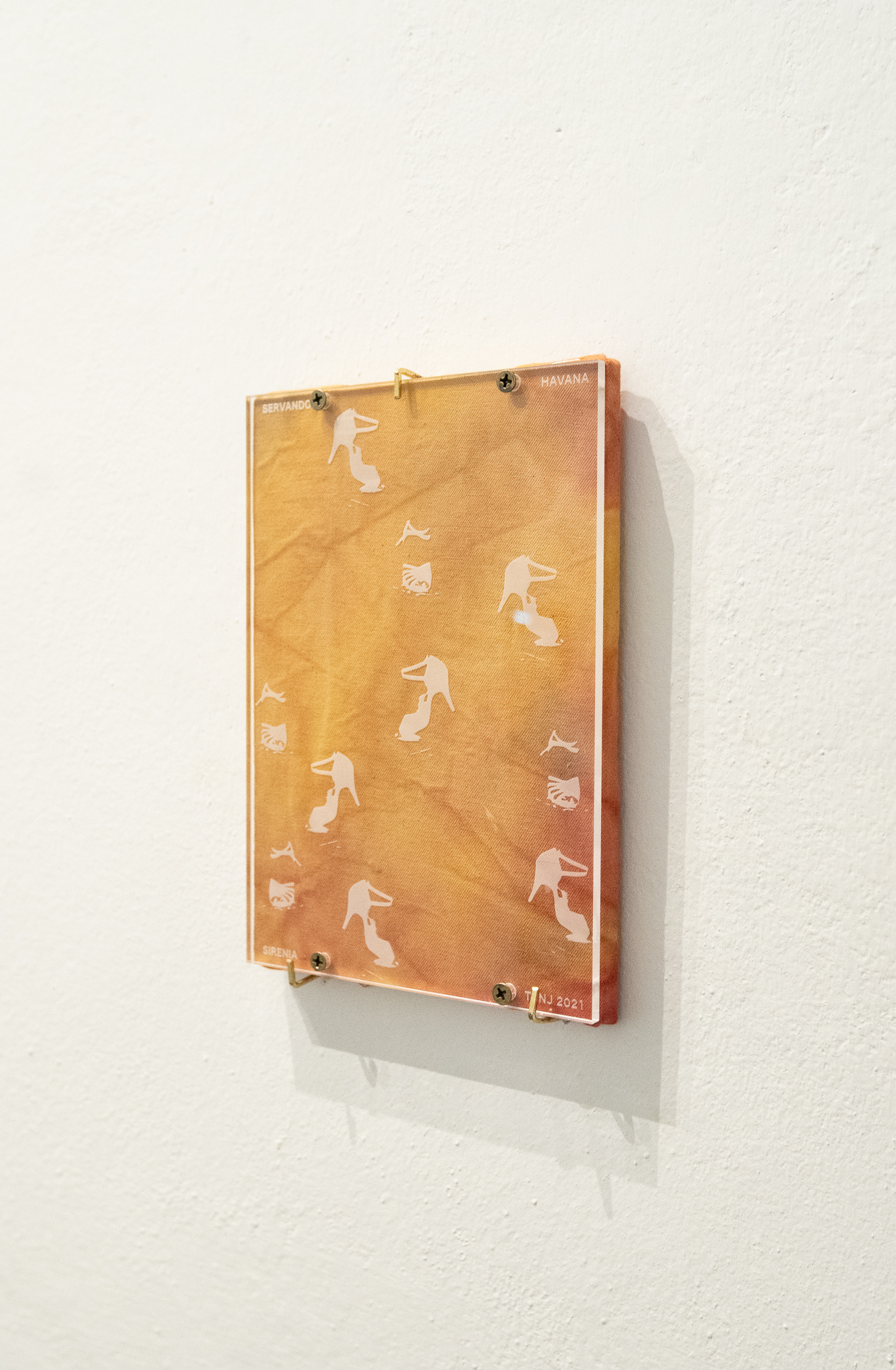 Because of the broad, and at times disparaging, fields of investigation, Nymark’s exhibition at Servando Gallery deploys different sculptural and pictorial outputs which are primarily connected through their shared Cuban locality. These works vary from painterly practices dealing with traditional cuban music culture and dancing, to reconstructions of ceremonial manatee ribs made by artisan Yuri Romero Penalver and his colleagues. Likewise, museumlike displays of aluminum boats created by local artisan, Cochelata are exhibited within a box constructed of materials, found or made locally in Havana and juxtaposed with a map of the area in which the shooting of parts of the film took place.